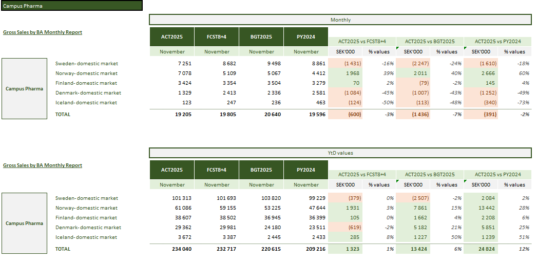 I november fakturerade Campus ut för TSEK 19 205. Detta är lite under både budget (-1436) och senaste prognos (-600). Det…
