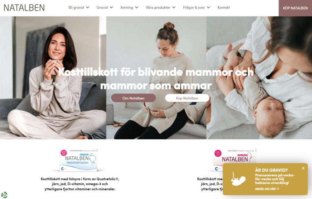 Natalben är kosttillskott som säljs på apotek. Natalben Amning, Natalben Gravid och Natalben Aktiv folsyra, är produkter särskilt framtagna och anpassade efter nordiska förhållanden. Det innebär att vi har utgått från nordiska rekommendationer. Natalben Gravid och Natalben Amning finns i flera europeiska länder, men innehållet i dessa är annorlunda och anpassade efter deras lokala förhållanden.