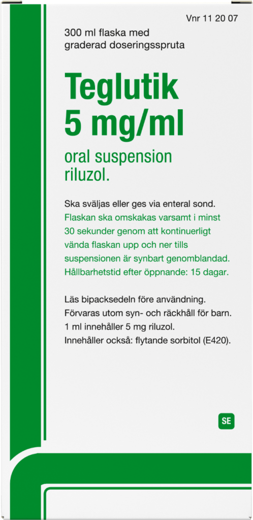 Teglutik är indicerat för att förlänga livet eller tiden till dess att mekanisk ventilation blir nödvändig hos patienter med amyotrofisk lateralskleros (ALS).